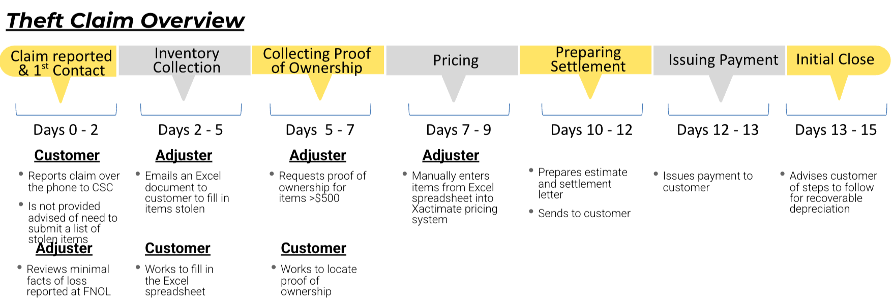 Adjusters handle simple, small item theft claims differently than larger, complex claims